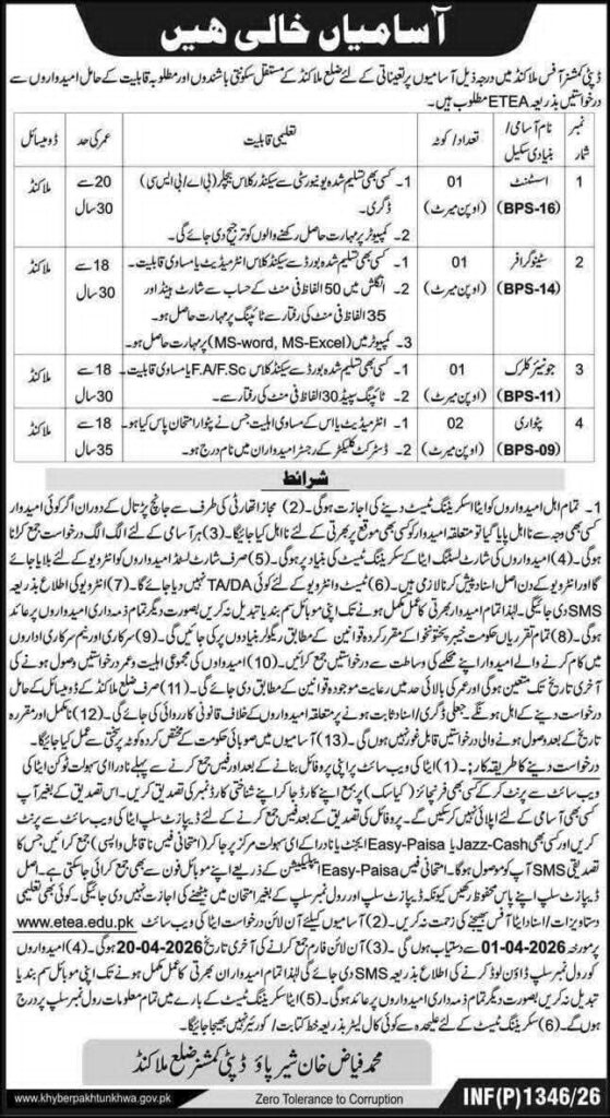 Who is eligible to apply? Candidates having Malakand domicile and the required qualification for the post can apply.
