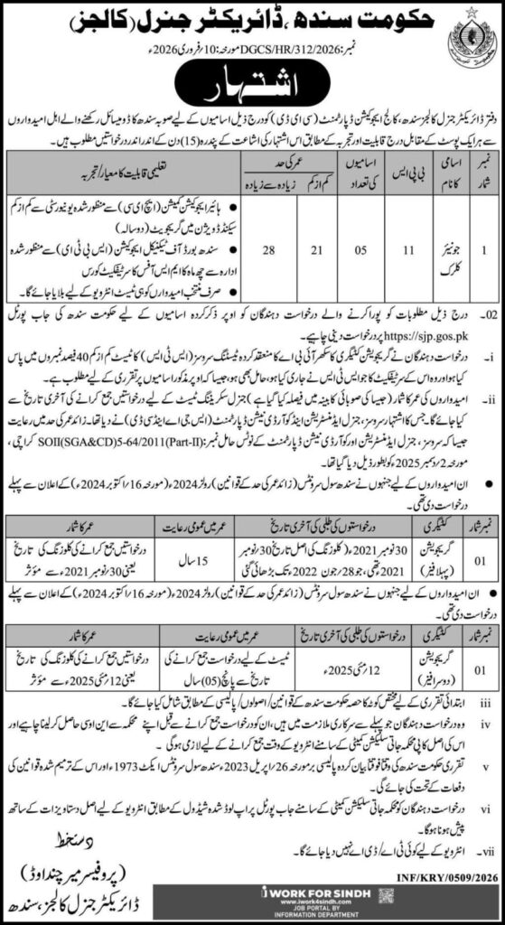 Applications must be submitted online through Sindh Government Job Portal: