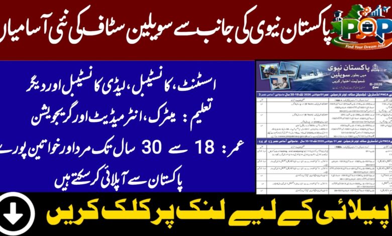 Pakistan Navy Civilian Jobs 2026 Batch B-2026 – Latest Vacancies Across Multiple Departments