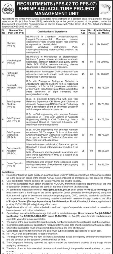 Best Shrimp Aquaculture Project Jobs 2026 in Punjab – PPS-02 to PPS-07 Vacancies (High Salary)